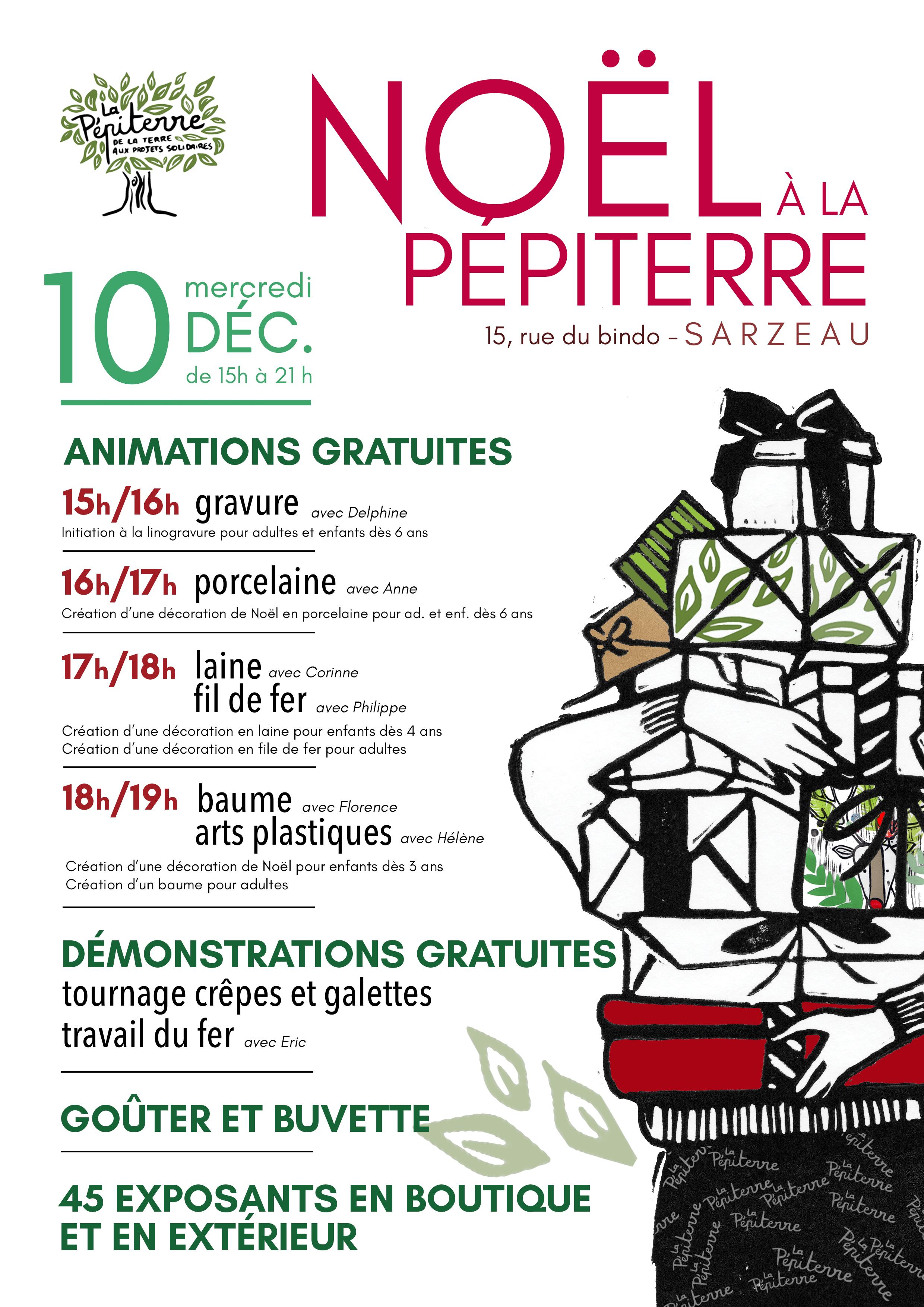 - mercredi 10 décembre : Sarzeau (56), La Pépiterre, là où je fabrique mes savons ! plein d'animations créatives gratuites, ça va être chouette :) affiche et programme ci-dessous